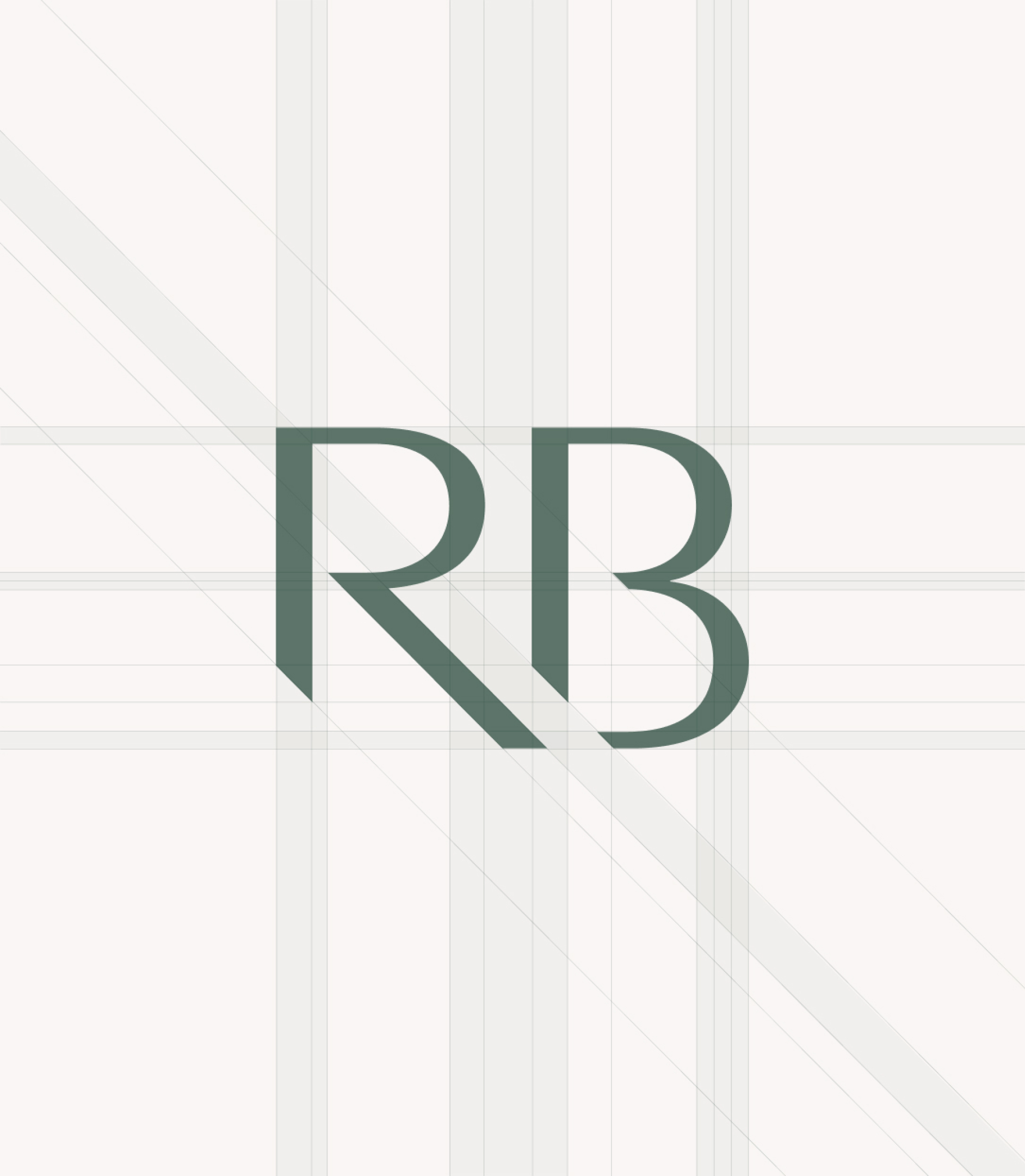 We then refined the ‘RB’ by extending the leg of the ‘R’, shearing off descender terminals of the ‘R’ and ‘B’ and tightening the kerning between the two letters.