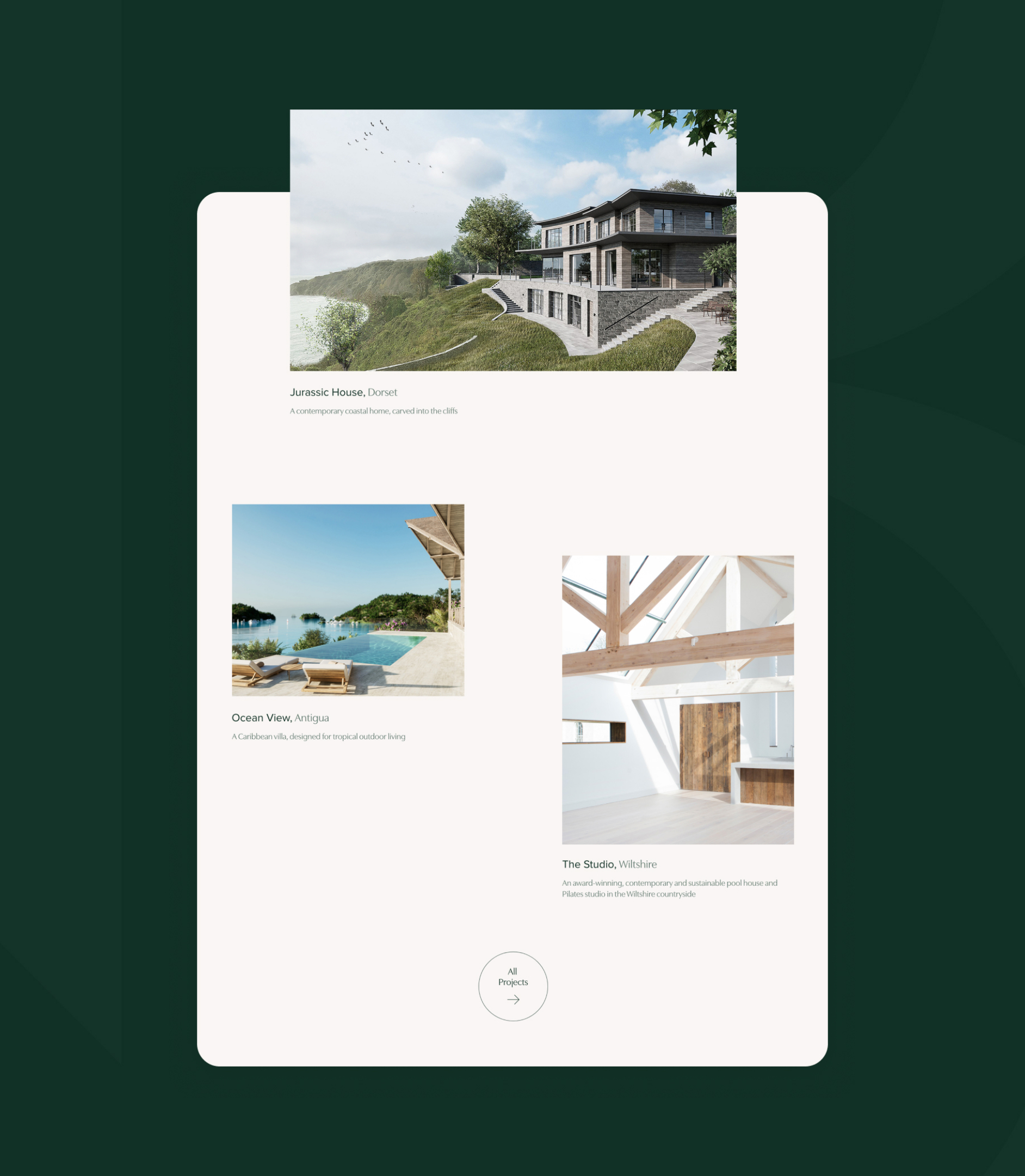 Because guiding prospective clients to RBA’s portfolio and making navigation accessible was so important, we proposed positioning tiled featured projects directly underneath the homepage banner area to initiate the user’s journey quickly and effectively. RBA can pick and choose which projects to sit within this featured area, tailoring what their clients see on arrival to the site.
